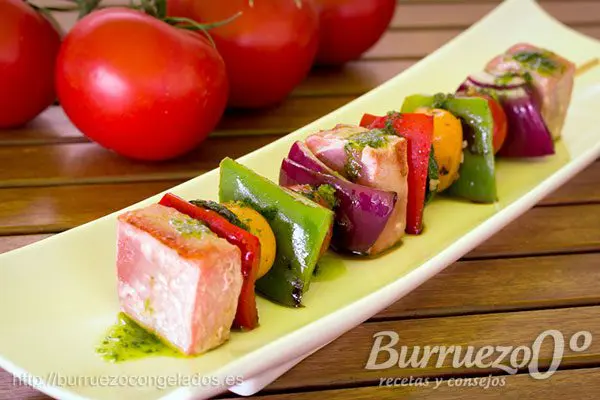 Estas brochetas son muy sencillas, tan solo ten presente que para saborear el atún, este no debe estar muy hecho. Acompáñalo con un poco de salsa verde.