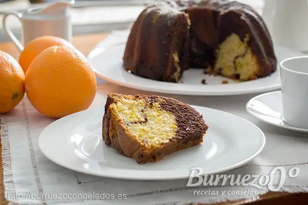 A la masa de naranja se le puede añadir unos trocitos de naranja confitada. Receta basada en el bizcocho mármol de “la cocina de Virginia”.
