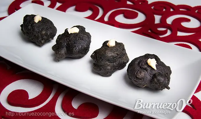Estos esponjosos buñuelos con bacalao, resultan tiernos y sabrosos en el paladar. El delicioso bacalao de su interior y la sutileza de la harina de arroz, convierten esta receta en un entrante exquisito. La tinta de calamar lo diferencia de un buñuelo convencional y el punto de alioli resalta este agradable bocado. Pruébalos, seguro que te gustaran.