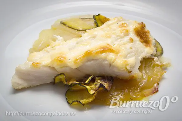 Sencilla y sana receta, donde podrás disfrutar de la fina textura y sabor de la merluza al horno con mayonesa, acompañada por una deliciosa guarnición a base de patata, manzana, cebolla tierna y calabacín.