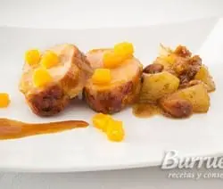 Secreto de cerdo ibérico relleno de frutas secas