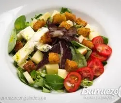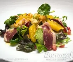 Os recomendamos esta deliciosa ensalada con frutas y magret de pato curado, una propuesta original y diferente a tener en cuenta.